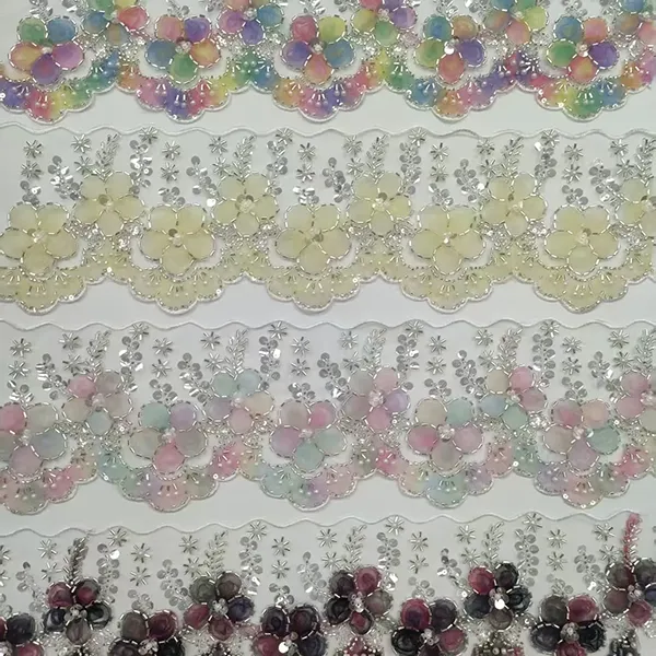 | کالا | توری گلدوزی شده چند رنگ با توری گلدوزی مشبک سه بعدی روبانی لوله مهره ای توری بارکد گلدوزی | ||